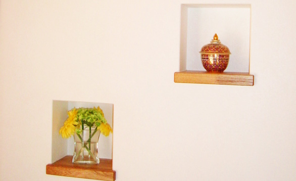 壁に埋め込まれた小さな棚が、インテリアをオシャレに演出!