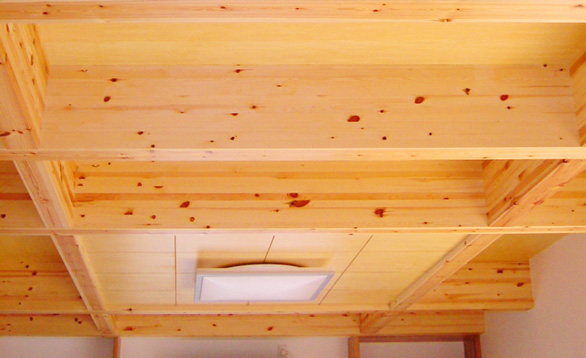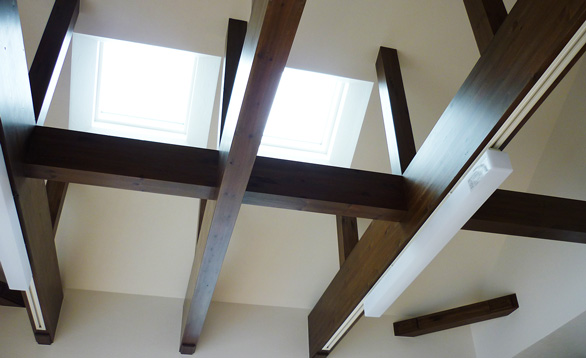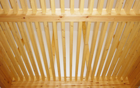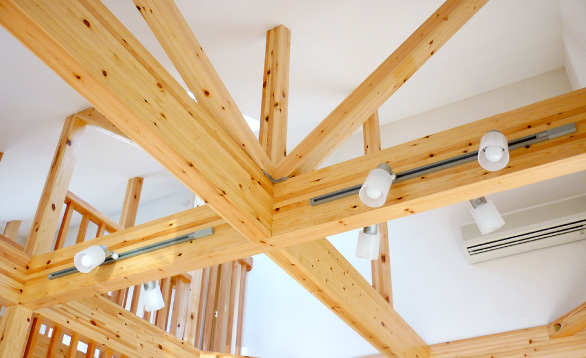 自然木の良さを結集した木材を梁に使用し、開放感ある天井に!