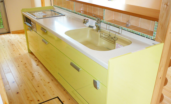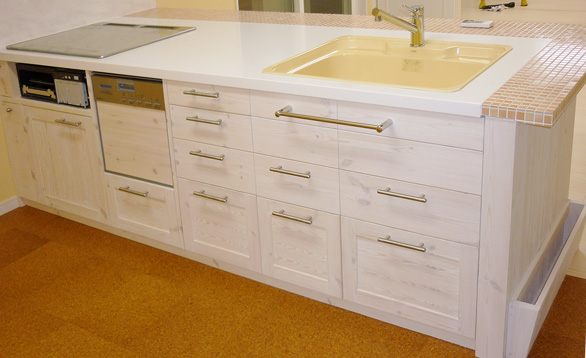 淡い色で、目にもやさしいオリジナルキッチン!