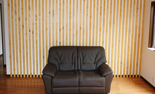 間仕切り壁など、縦並びのルーバーで調和のとれたデザインに!