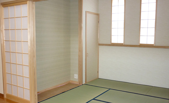 全体的に落ち着いた雰囲気のお家に仕上がりました。ご主人様には、ひとりで静かに物思いにふけることができるような、シンプルかつ居心地の良い書斎をつくりました。木材を格子状に組み上げた、伝統的な天井様式「格天井」も魅力の一つです。