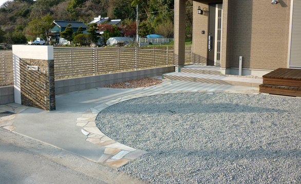 丸みのあるデザイン門塀&ロートアイアン風の門扉がお出迎え!